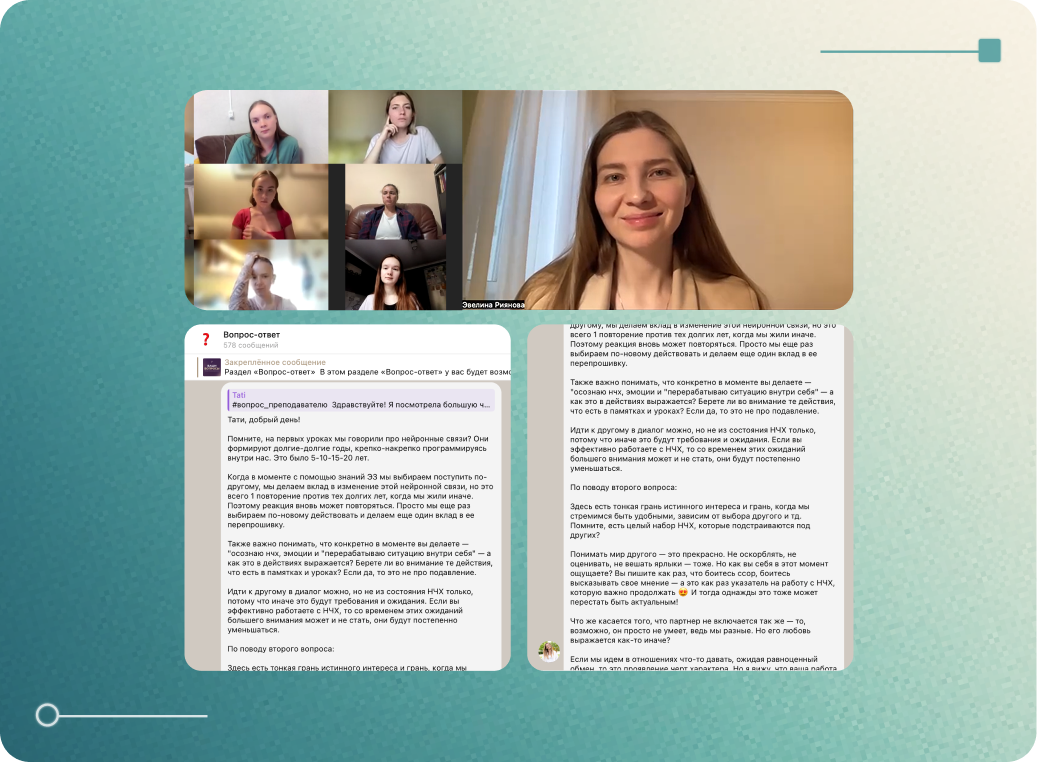 «Это обучение для меня открыло совершенно новую жизнь, потому что я начала в первую очередь понимать себя, чувствовать себя, чувствовать других людей»